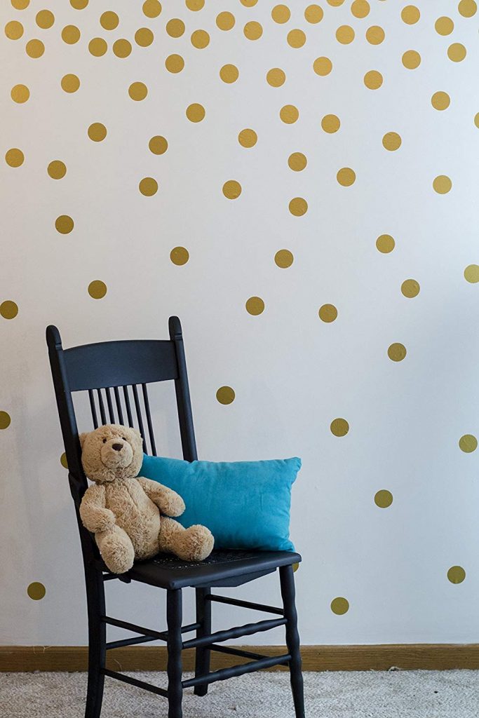 Choose fun kids artwork to hang up, or use a creative way to display your own kid’s masterpieces for all to see in their playroom 😉 Or choose fun vinyl decals like these awesome polka dots that you can use to decorate any surface and easily remove if needed later!