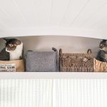 The biggest change that we tackled this month was that we covered up the last of the exposed insulation! The very front and the very back of the bus we hadn’t covered yet. As a result, every time we walked inside the bus, a big to-do of yellow spray insulation was staring us in the face. So in the back bedroom, we covered it with OSB board and shiplap. Then in the front, we built a cool built-in over the driver’s area to make the most use of that space!
